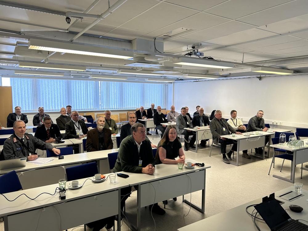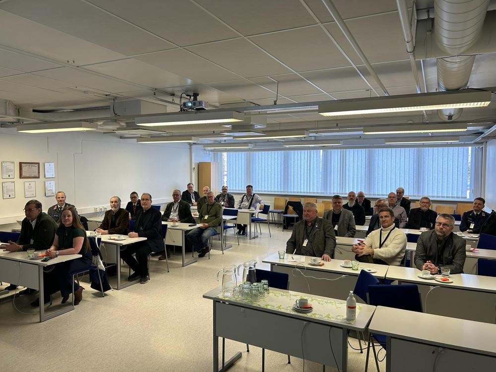 Tilaisuuden teemana olivat Materiaalipoliittisen strategian toimeenpano sekä suomalaisen ampumatarviketuotannon ylösajo. Alustajina toimivat Puolustusvoimien sotatalouspäällikkö kenrl Mikko Heiskanen aiheena ”suomalaisen ampumatarviketuotannon ylösajo” ja Puolustusministeriöstä kaupallinen neuvos Pasi Pajunen aiheena ”Materiaalipoliittisen strategian toimeenpano”. Syyskokoukseen osallistui mukavasti yli 40 jäsentä. Aiheista käytiin vilkasta keskustelua. Alla on muutamia kuvia syyskokouksesta.